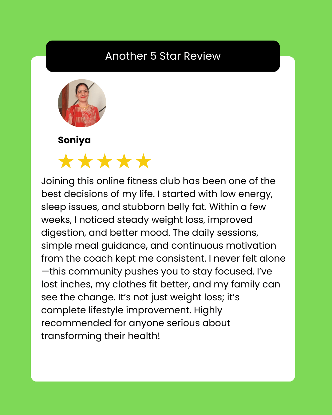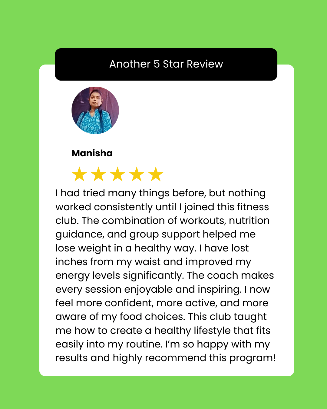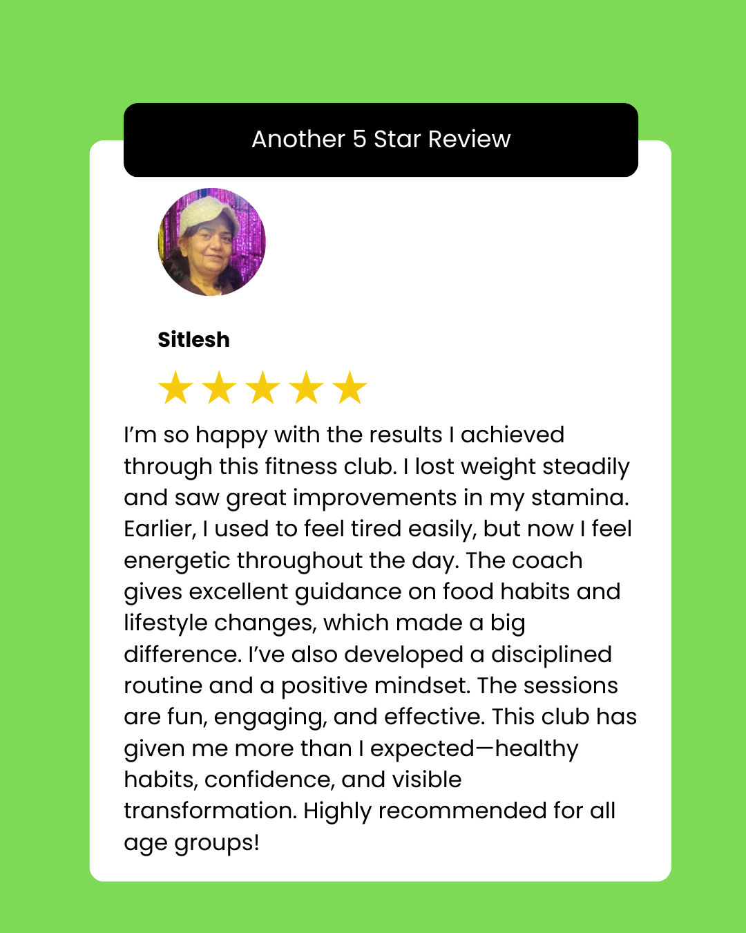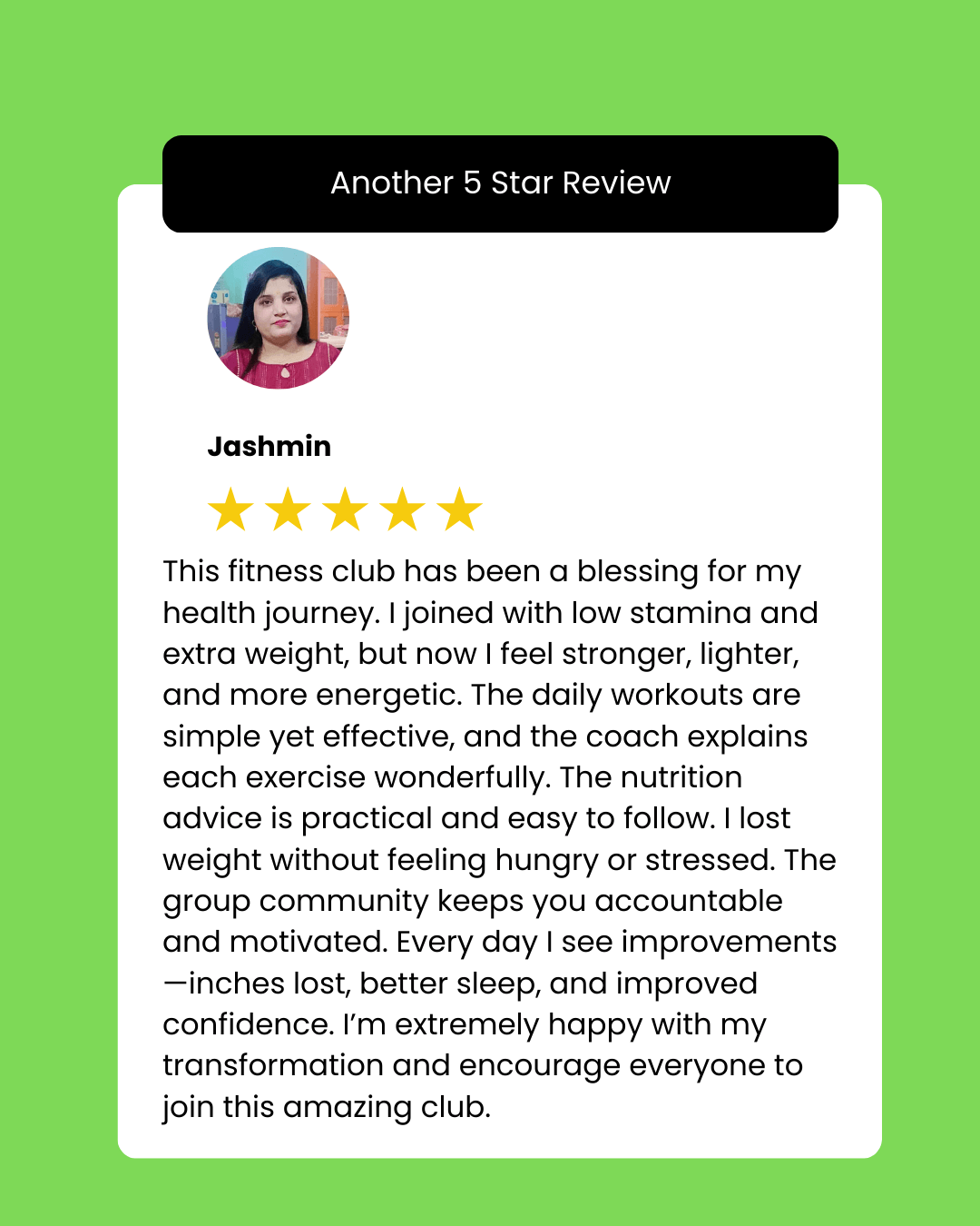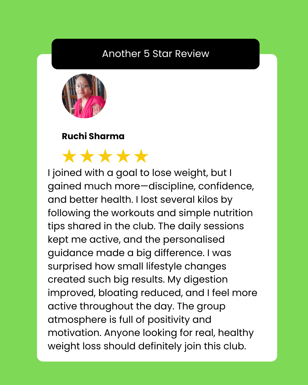 Improve stamina & energy — Follow guided workouts and smart eating habits to feel lighter, stronger, and more energetic throughout the day.
