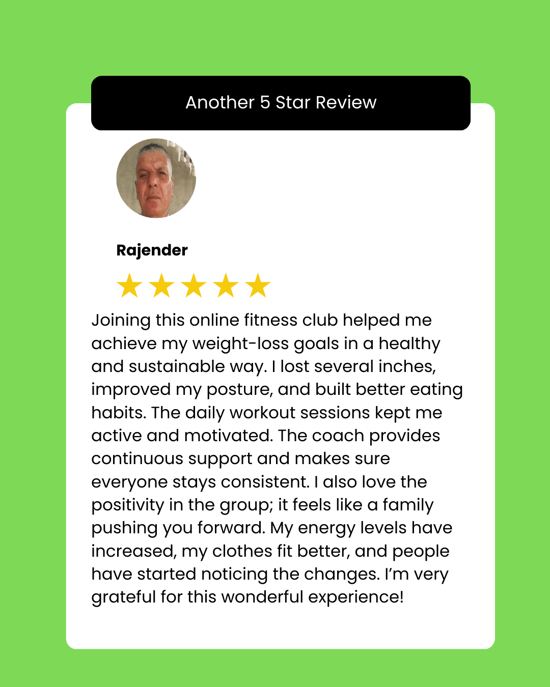 All guidance, workouts, nutrition tips, coaching sessions, and fitness advice provided through our programs, videos, or communication channels are meant solely for general wellness, lifestyle improvement, and educational purposes. Participants results are based on their own experience.